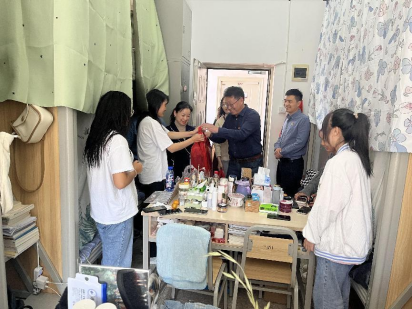 各位领导和老师来到员工宿舍将御寒毛毯送到同学们手中,在交谈过程中了解同学们的学习和生活情况,也告诉同学们有任何困难都可以向老师寻求帮助。