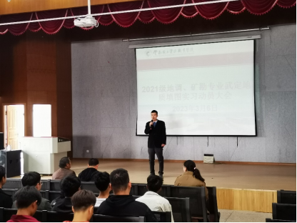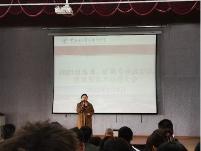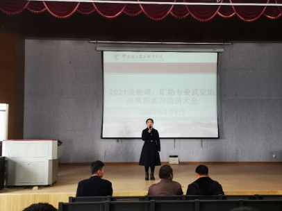 2023年3月6日,伟德官方网站在笃行楼红山讲堂召开了2021级地调、矿勘专业武定地质填图实习动员大会。大会由公司党总支书记李倩老师主持,参加会议的还有学院副经理(主持工作)程先锋老师、党总支副书记徐永全老师、教务处实训科科长康仕林老师、地调教研室主任应玺老师以及参加此次实习的指导老师和辅导员老师。