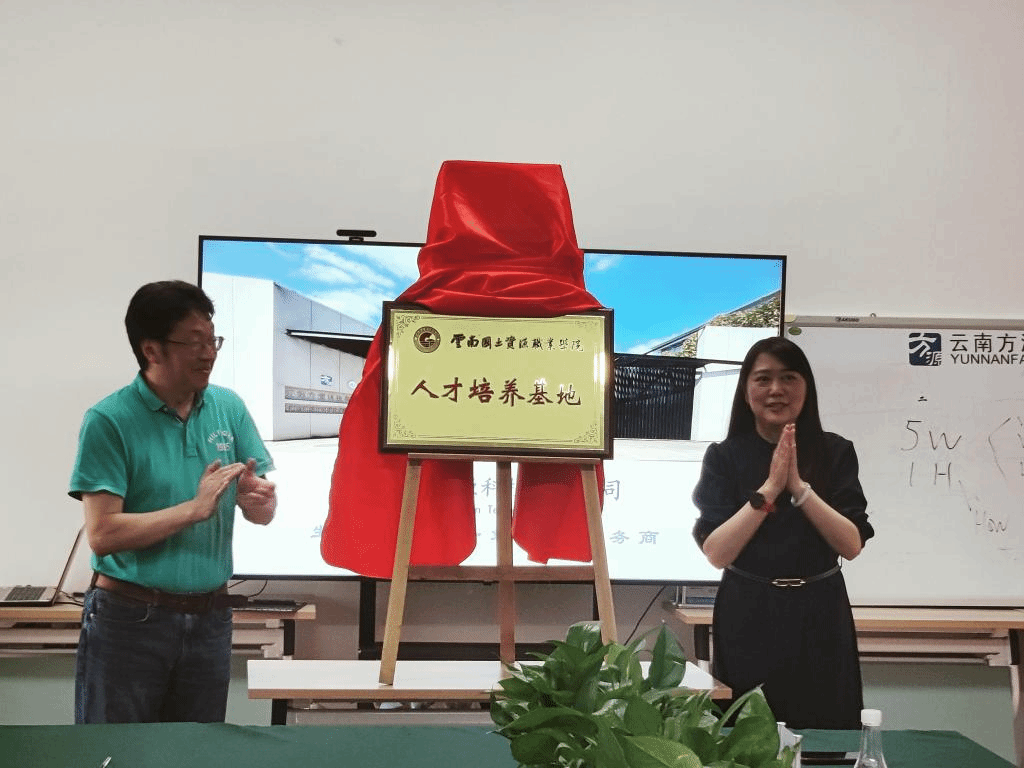 齐武福副董事长与刘敏雯副总经理为“人才培养基地”揭牌