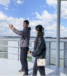 两位教师在赵灵甫站长的介绍下参观龙门藻水分离站大型藻水打捞平台、藻浆池、分离池、藻渣池, 了解藻水打捞、藻水分离工艺,藻泥处置等。