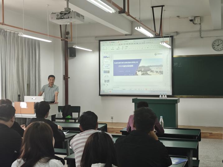 筠诚和瑞环境科技集团股份有限公司罗松德经理从单位简介、组织架构、发展前景等方面向同学们全面介绍了单位情况,并播放了工作视频,帮助同学们了解工作流程。在答疑环节,现场气氛活跃,积极互动,用人单位也针对同学们的提问进行了一一解答。