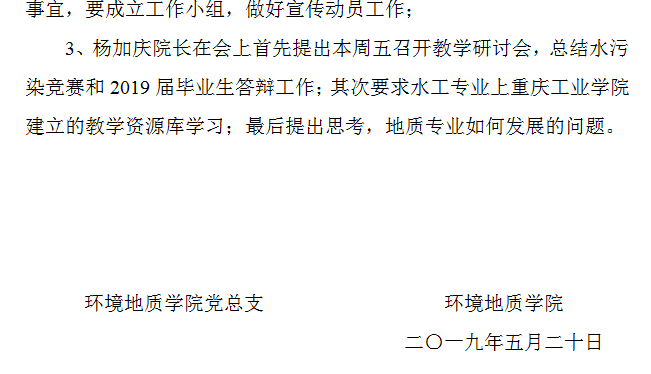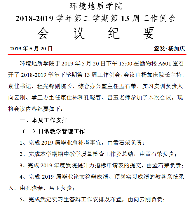 环境地质学院 2018-2019学年第二学期第13周工作例会