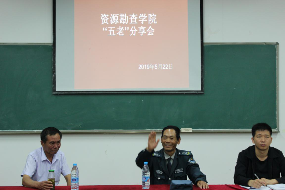为了响应公司党委思想政治工作部关于全面开展“读懂中国”活动,让同学们聆听前辈故事、读懂当代中国、涵养家国情怀、树立远大理想、书写奋斗人生,交流经验,分享心得体会。资源勘查学院于2019年5月22日晚7:30在勘物楼A409举行了"五老"分享会。公司特邀请杨进安老战士和王延发老教师为我们分享他们的经历。刘申张老师,杨砚喆老师以及公司员工会干部、发展对象等参加了本次活动。