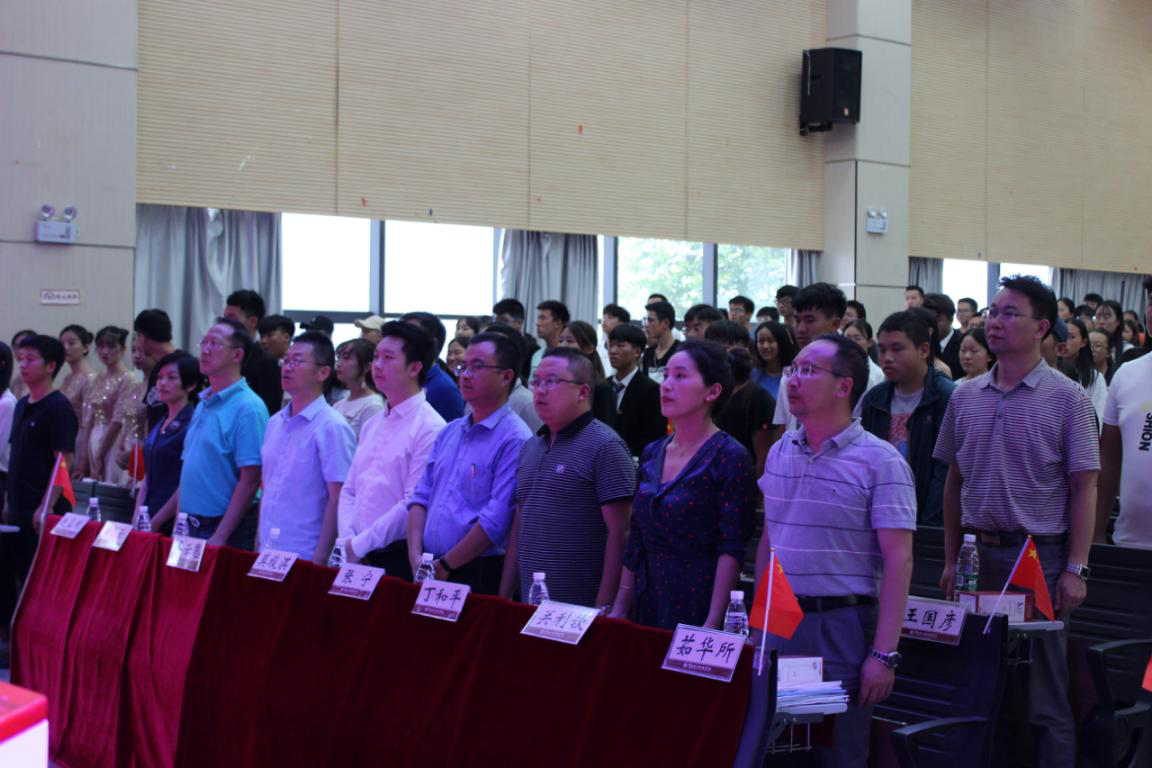 首先,全体起立奏唱国歌。然后,由主持人介绍本次大赛评分细则。比赛共分为三个阶段,经过初赛评审,十三个项目团队晋级决赛,每个项目进行五分钟路演,专家评委现场提问、打分等,评出最终名次。