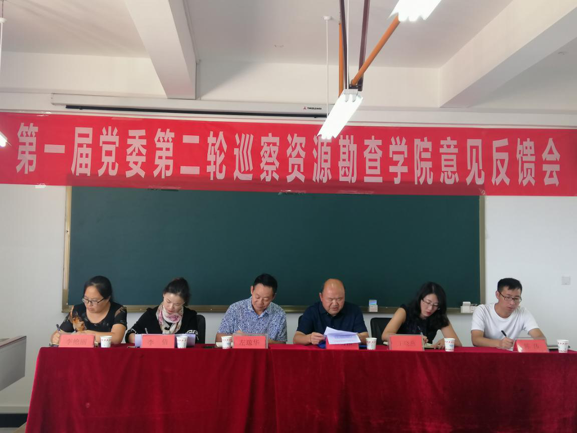 根据公司党委巡察工作的部署,9月16日中午12:40第一届党委第二轮巡察资源勘查学院意见反馈会在载物楼601室召开。巡察组组长王明伟、组员王晓燕、陈伟,资源勘查学院经理左琼华、资源勘查公司党总支副书记李倩、资源勘查学院副经理李艳丽以及资源勘查学院全体教职工参加了会议。