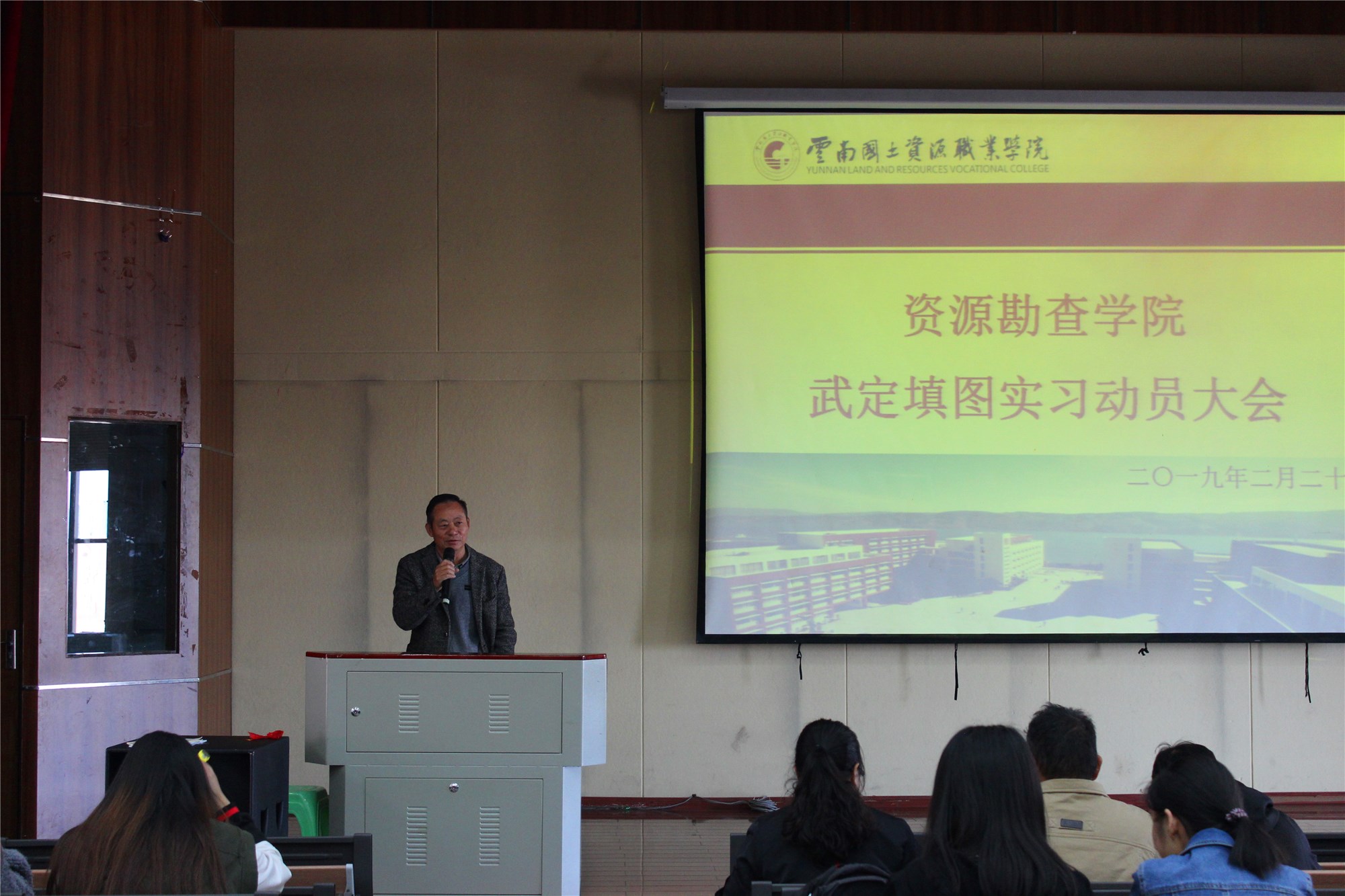 2月25日,公司2017级武定填图实习动员大会在光荣讲堂举行。公司经理左琼华、副经理李艳丽、实习指导主任徐永全、实习队长刘陈明、实习导师马绍春、实习导师杨德敏老师为公司17级矿勘班、地调1、2班开开展了此次动员大会。