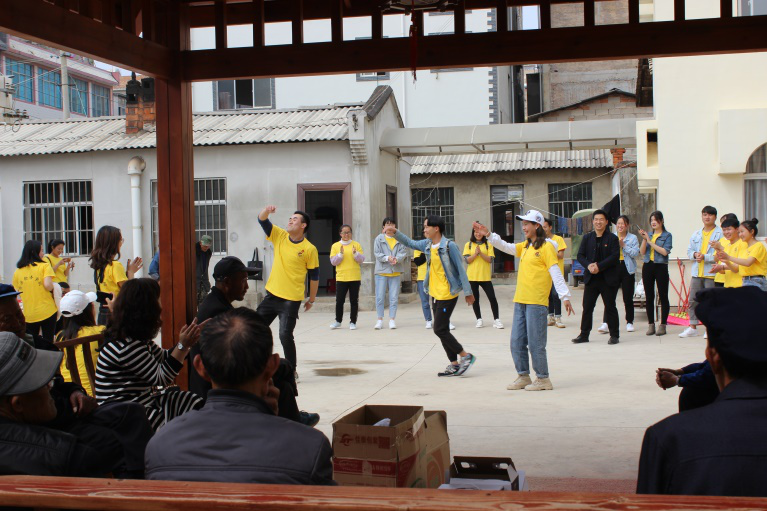为了更好地表达我们的关爱之心,我们还准备了几个小节目,带有"藏族特色的舞蹈","实在舍不得"等节目让老人们开怀大笑,李倩书记和刘申张老师还为老人们送上了一首《山歌好比春江水》将活动推向了高潮。整个活动场景十分动人,敬老院里到处是欢声笑语,呈现着一张张幸福开心的笑脸。临走之前,李倩书记和经理亲切握手,让经理和老人们,照顾好自己,注意身体,有机会还会再来看望他们的。最后,我们的志愿者和老人一起进行了合影留念。