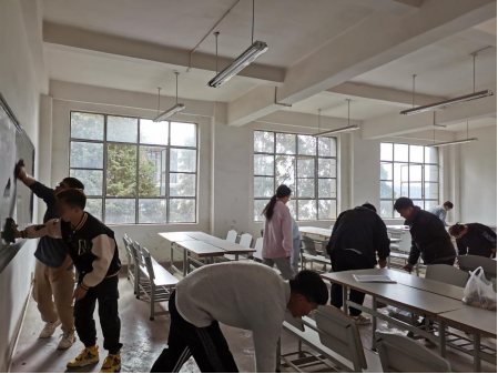 3月16日上午,公司党总支书记李倩、教师党员代表及在武定校区进行填图实习的218名同学共同进行了武定校区“大扫除”,对校区的校园、教室、宿舍进行了清扫。