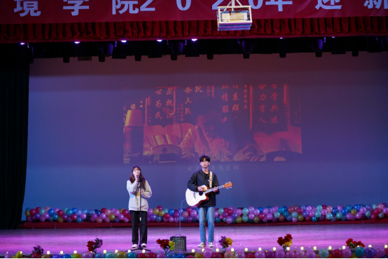 晚会期间,学校领导、学院领导为在迎新杯篮球赛中获得奖项的班级与个人颁奖。颁奖结束后,表演继续。2020级环境工程技术2班的民族舞《爱上凉山》展现了彝族舞蹈风格所具有的粗犷、豪放;20级地质灾害与调查防治1班和环境评价与咨询服务1班带来的歌曲《当》带我们回到了小时候的时光,体验了一把潇潇洒洒快意人生的乐趣;员工会带来的现代舞《how you like that》热情似火,领略了一把现代舞的魅力,他们还带来了合唱《纪念用生命托起世界的人》纪念那些在疫情中默默守护着我们的人;现代舞《hand clap》用娴熟的舞步为我们展示他们的努力;员工会的藏舞《天浴》让我们看见藏族少女的优美舞姿,宛如一幅优美的画卷;最后是地调一班带来的合唱《我和我的祖国》他们的歌声中唱出了对祖国浓烈的热爱和赞美。