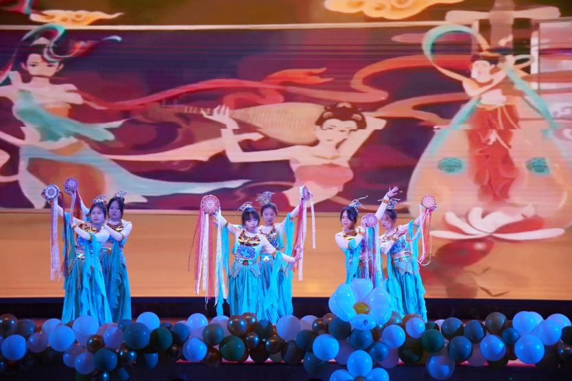 23级环境监测技术3班为我们带来敦煌舞蹈《丝路幻影》,让观众们一起走进这带有异域风情的艺术天地,敦煌文化就像璀璨历史长河中的一颗明珠,在黄沙漫地的大漠中闪烁着璀璨的光辉。