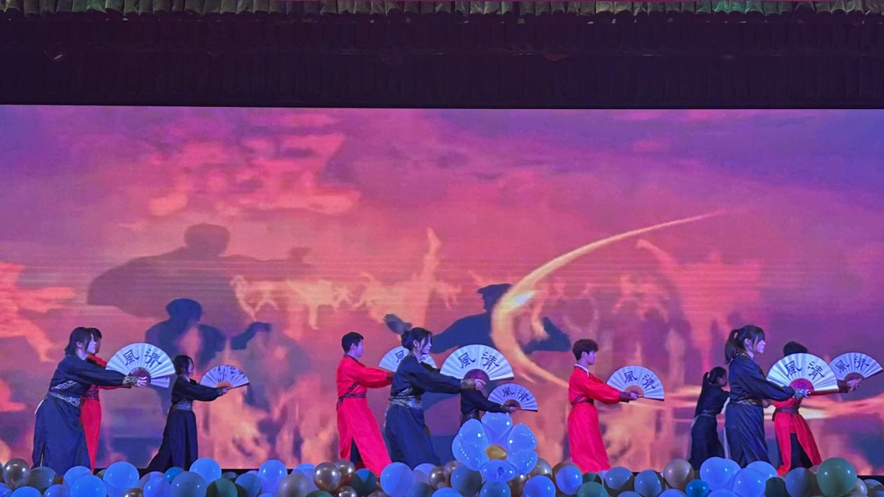 武术协会为我们带来的武术表演《中华魂》,充分体现了武术作为我们中华民族伸张正义的象征,国土儿女在舞台上虎虎生威,一展身手。