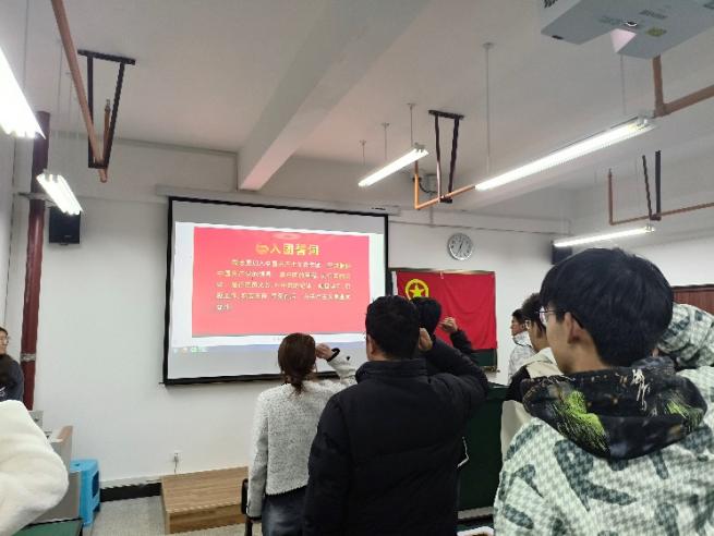 会议最后,团总支副书记普杰组织所有到会团员开展重温入团誓词活动。