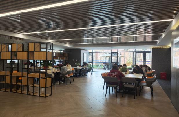 “一站式·员工之家”是一个集学习指导、心理咨询、生活服务、思政教育、阅读休闲、创新创业、社区课堂等多个功能区为一体近1000平方米的员工社区。社区坐落于绘锦苑二栋负一楼,这里是专为广大学子精心打造的综合服务中心,多元化的功能设置,是员工学习、生活、成长的重要基地。