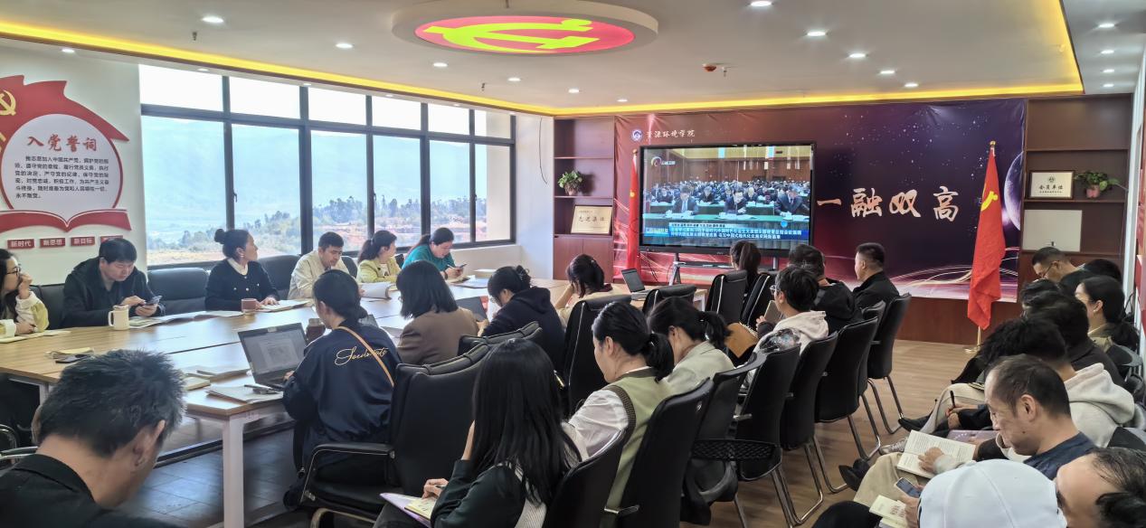 会议进行第一议题:集中学习观看全省学习贯彻习近平新时代中国特色社会主义思想主题教育总结会议。会议指出,开展学习贯彻习近平新时代中国特色社会主义思想主题教育是党中央为全面贯彻党的二十大精神、动员全党同志为完成党的中心任务而团结奋斗所作的重大部署。关利钦书记强调,全体教职工要持续加强政治理论学习,各党支部也要通过“三会一课”、主题党日等多种形式抓好学习,将党的创新理论运用到我们的实际教学工作中。