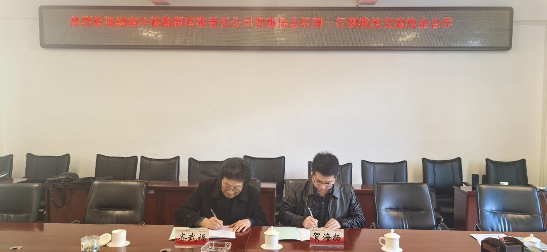 3月5日,学校与湖南中核勘探有限责任公司在明尚楼411举行校企合作签约仪式。