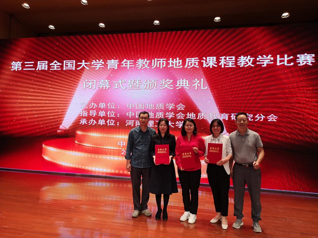 公司黄琴辉、赵雪琼、李继红老师在2021年5月15-17日举办的第三届全国青年教师地质课程教学比赛中荣获佳绩,其中黄琴辉老师荣获一等奖,赵雪琼、李继 红两位老师荣获二等奖。