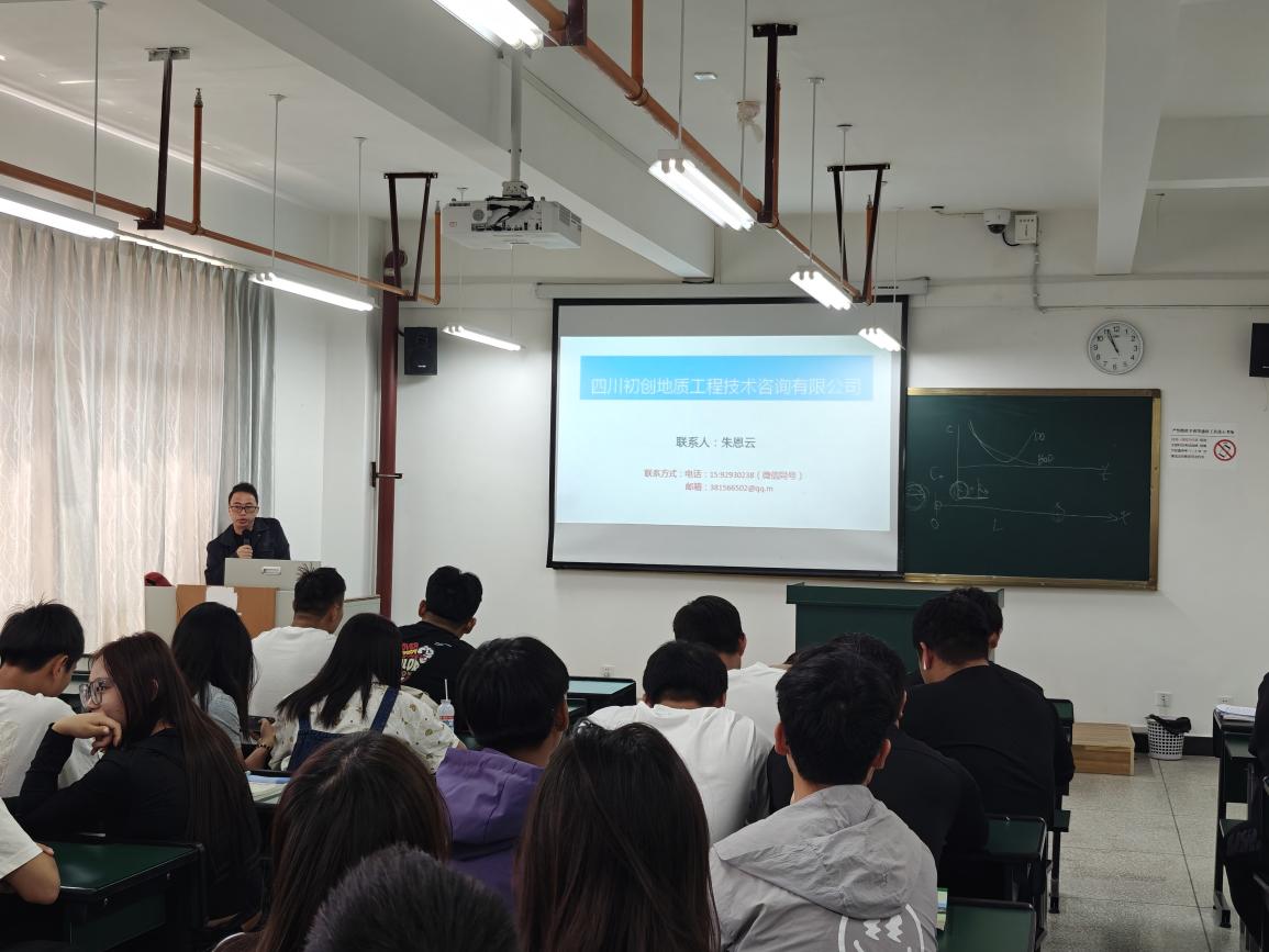 四川初创地质工程技术咨询有限公司总经理朱恩云从个人经历、公司发展、薪资待遇等方面介绍了单位情况。在自由提问环节,同学们还就企业环境、岗前培训、单位用人需求等方面积极提问,宣讲单位耐心地为同学们解答,加深了员工对企业的了解。